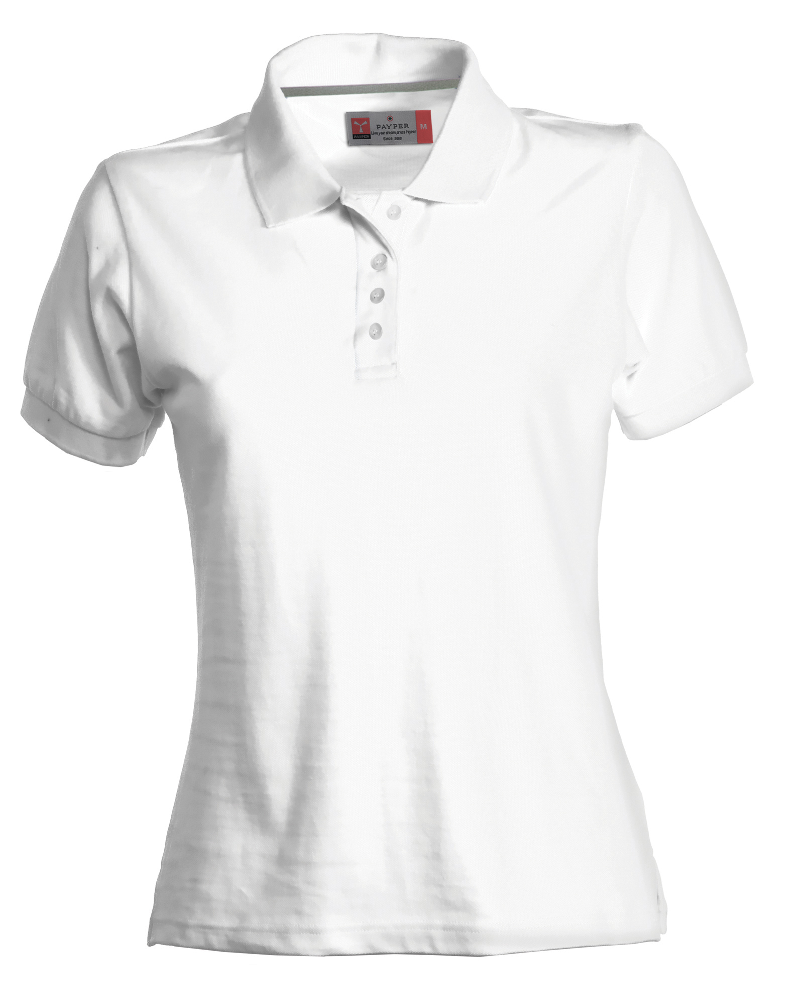 Polo da donna a manica corta con 4 bottoni in tinta con effetto perlato, maniche a costine, spacchetti laterali, nastro copri cuciture sul collo e nastro di rinforzo sui lati.Composizione: piquet 100% cotonePeso: 190 gr/mqTaglie: S/XL Colore: bianco.